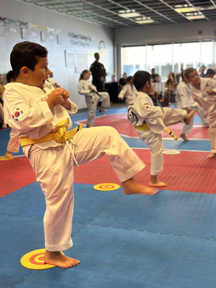 Taekwondo practice boosts children's confidence as they learn to concentrate and follow instructions. This focus can translate to better behavior at home and improved performance in school.